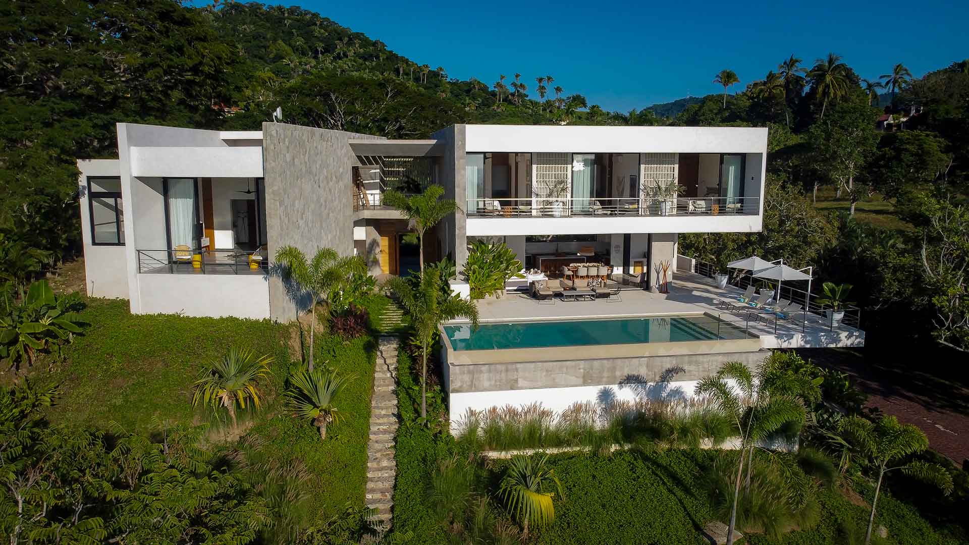 Casa Loma (Hillside Home) is one of San Pancho’s newest editions, nestled on the top of a knoll and hosting expansive views of the Pacific Ocean and lush tropical jungle, just steps from the beach and town center of San Pancho, Riviera Nayarit. Upon entering the property, one is immediately encompassed with the modern, yet beachy, architectural design.