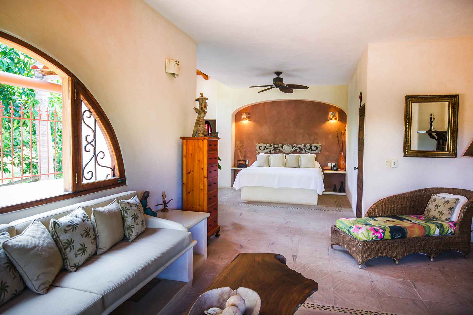 The main house is on shared property with a detached casita, Casita San Pancho, an exquisite one-bedroom cottage which is often occupied by other vacationers. The entire property is privately walled in with completely separate locked entrances for the main house and casita. For more information regarding the casita or main house combined with the casita, see the one-bedroom Casita San Pancho and/or the three-bedroom Casa San Francisco and Casita.